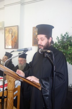 Ο Πανοσιολογιώτατος ομιλητής π.Αθανάσιος, αφού ευχαρίστησε τον Σεβασμιώτατο κ.Ιγνάτιο για την τιμή της προσκλήσεως και τους θερμούς του λόγους, μίλησε στην συνέχεια με θέμα: « Η ατομική προσευχή των Ιερέων ως προϋπόθεση της Θείας Λειτουργίας». “Η προσευχή είναι η ζωή της ψυχής και ο δρόμος που μας ενώνει με τον Θεό. Ο ιερέας είναι ο κατεξοχήν προσευχόμενος άνθρωπος που με την πύρινη ικεσία του κατεβάζει στους ανθρώπους τον Ουρανό και φέρνει τις προσευχές τους πάλι κοντά στον Ουράνιο Νυμφίο Χριστό. Όποιος δεν προσεύχεται σε αυτόν τον κόσμο, απειλείται από πνευματικό θάνατο! Ο ιερέας πάλι προκειμένου να τελεσιουργήσει το ιερό μυστήριο των μυστηρίων οφείλει να προετοιμάζεται πάντοτε ψυχικά και πνευματικά, να είναι ήρεμος, ήπιος και γλυκύς, απηλλαγμένος ει δυνατόν από των βιωτικών μεριμνών, γιατί το έργο αυτό είναι θείο και αγγελικό. Με συγκεντρωμένο τον νού και την καρδία, ιεροπρεπής και αμίλητος, ζώντας το μυστήριο του μέλλοντος αιώνος στην καρδιά του οφείλει να εισοδεύει το ιερό Ευαγγέλιο και τα φρικτά μυστήρια και να γίνεται η δική του είσοδος αφορμή και πρόκληση για την είσοδο των πιστών στην βασιλεία του Θεού, την αιώνιο”